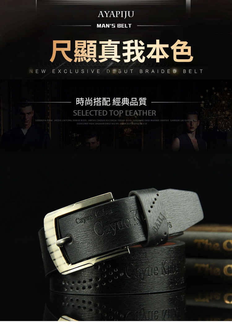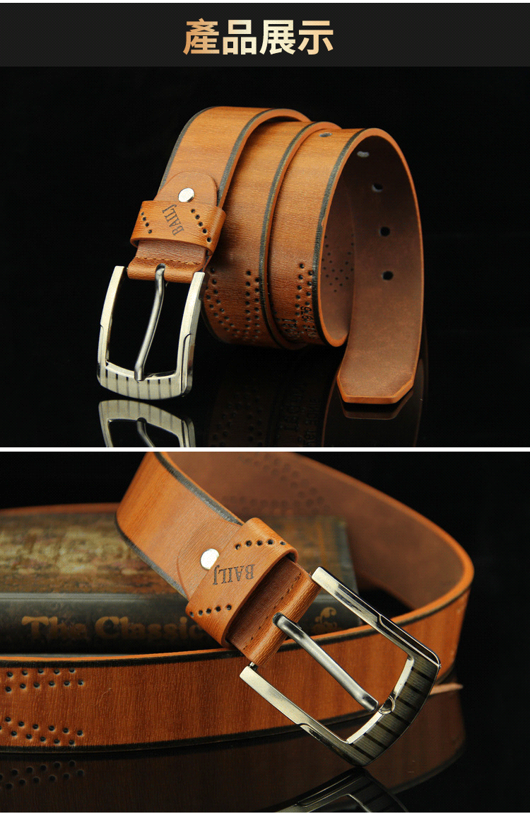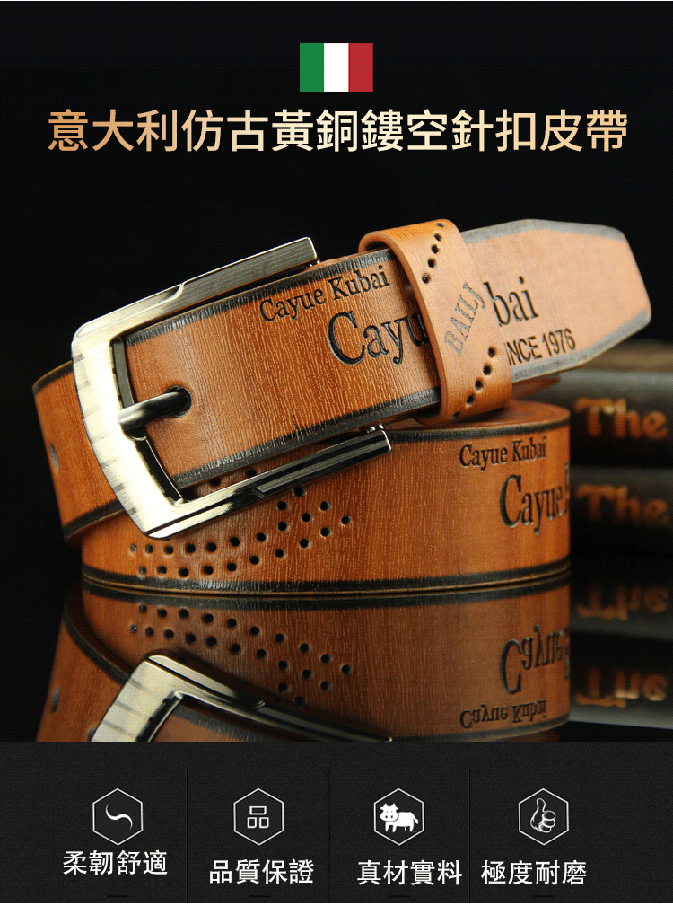 義大利仿古黃銅頭鏤空式針扣皮帶